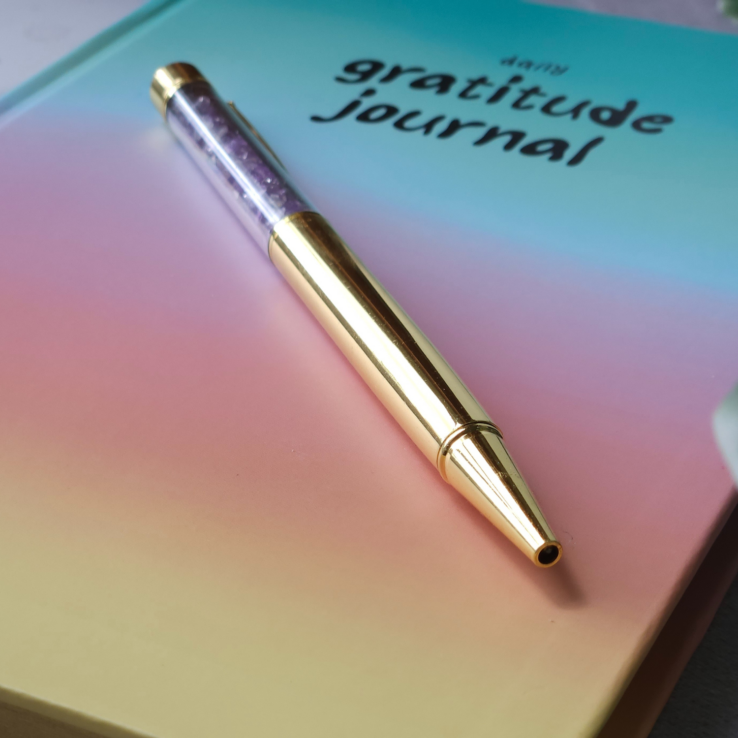 Keep track of goals and lists of things to be thankful for with this cheerful gratitude journal. With daily reminders to keep the positive energy flowing and a matching amethyst pen for an extra touch of magic, this journal is just what you need to manifest your best self.